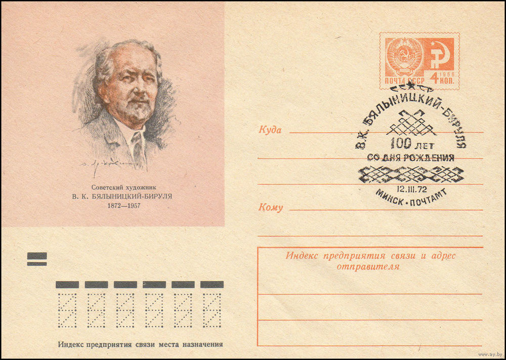Художественный маркированный конверт СССР со спецгашением N 7973 (28.12.1971) Советский художник В.К. Бялыницкий-Бируля 1872-1957