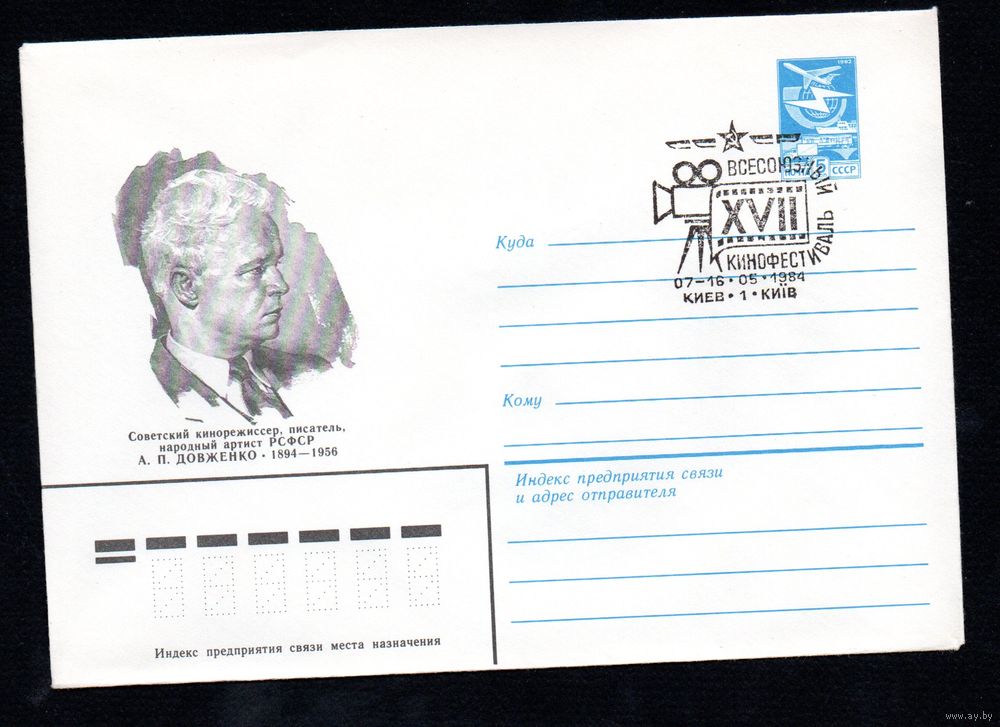 Художественный маркированный конверт СССР со спецгашением N 84-141 (27.03.1984) Советский кинорежиссер, писатель, народный артист РСФСР А.П. Довженко 1894-1956