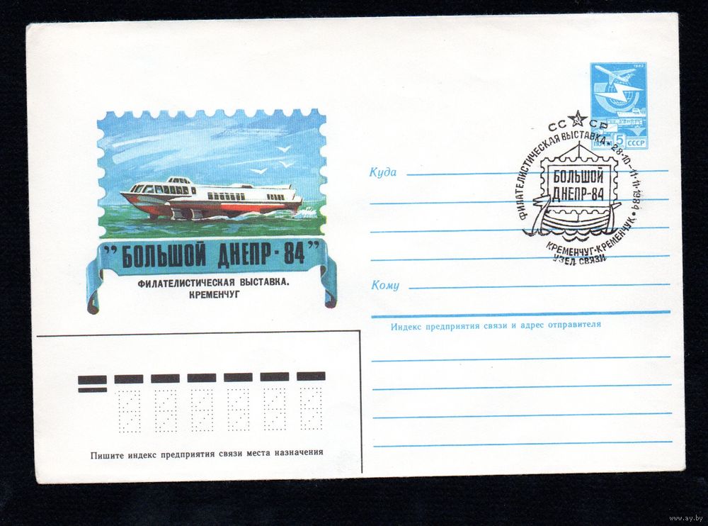 Художественный маркированный конверт СССР со спецгашением N 84-243 (18.06.1984) "Большой Днепр-84" Филателистическая выставка Кременчуг