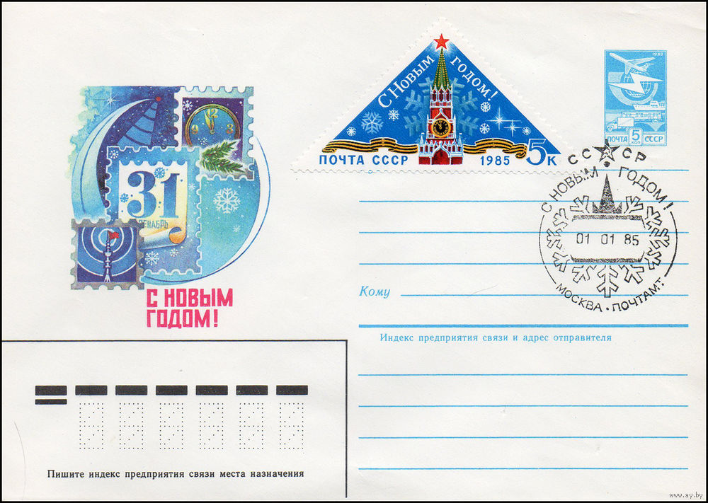 Художественный маркированный конверт СССР со спецгашением N 84-265 (21.06.1984) С новым годом!