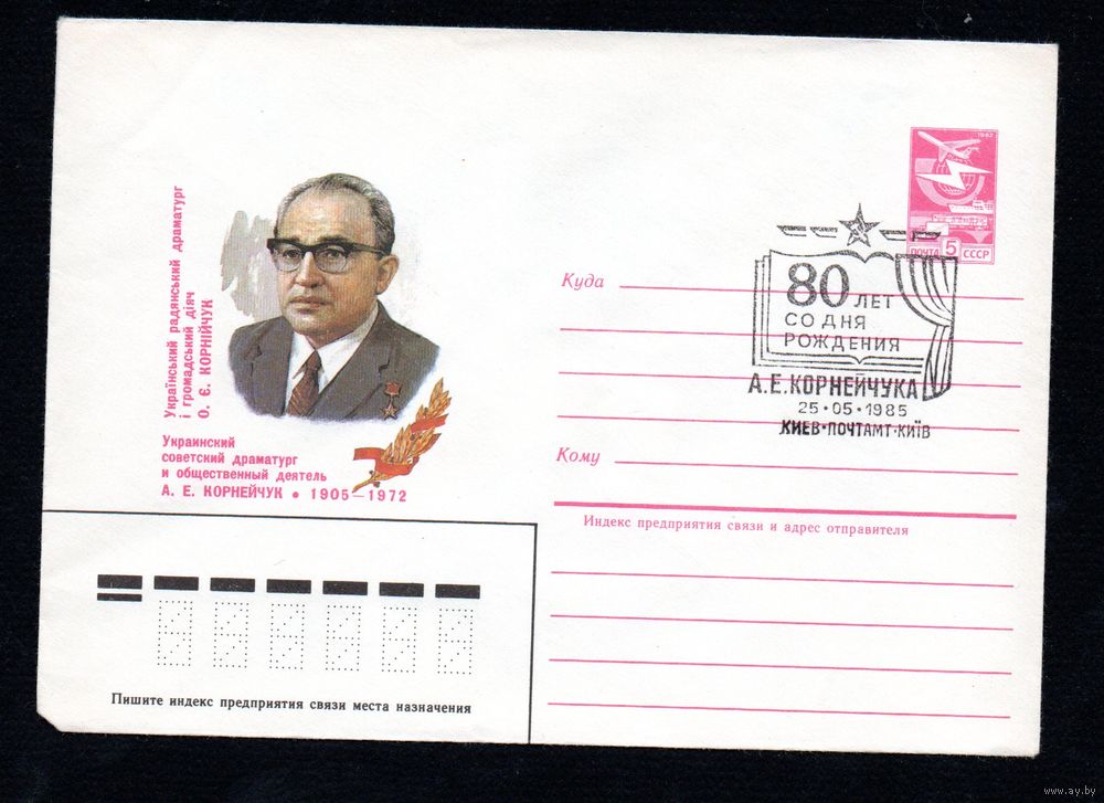 Художественный маркированный конверт СССР со спецгашением N 84-517 (26.11.1984) Украинский советский драматург и общественный деятель А.Е. Корнейчук 1905-1972