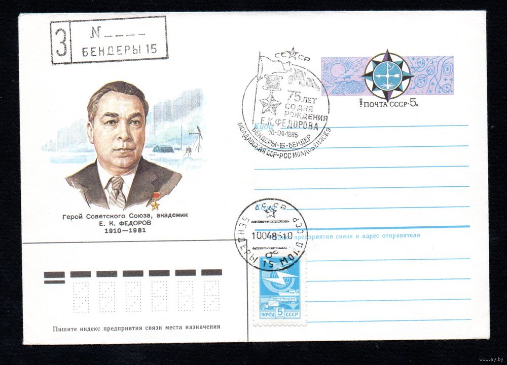Художественный маркированный конверт СССР со спецгашением N 85-137 (11.03.1985) Герой Советского Союза академик Е. К. Федоров 1910-1981