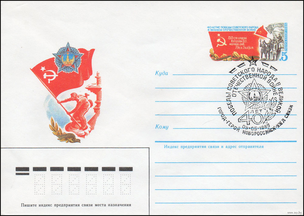 Художественный маркированный конверт СССР со спецгашением N 85-20 (16.01.1985) 40 лет Победы советского народа в Великой Отечественной войне