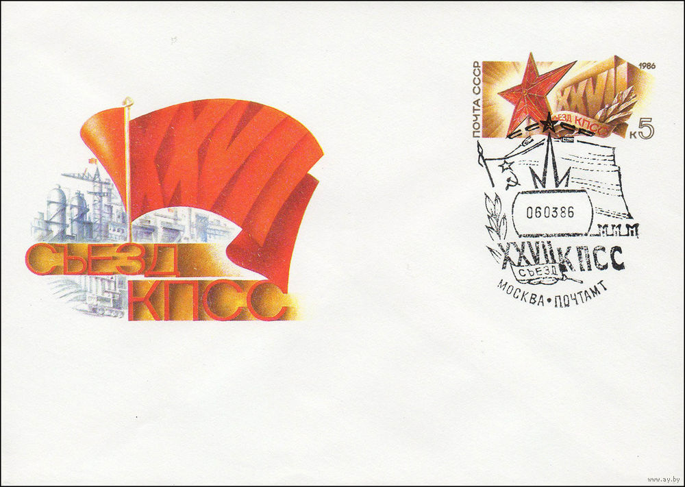 Художественный маркированный конверт СССР со спецгашением N 85-539 (20.11.1985) XXVII Съезд КПСС