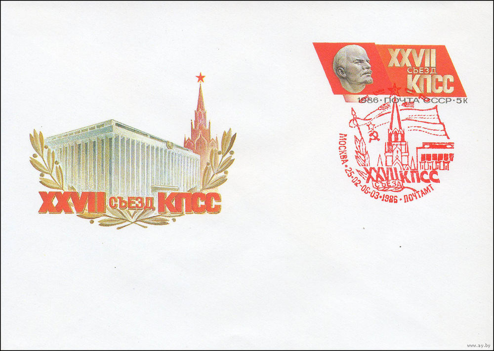 Художественный маркированный конверт СССР со спецгашением N 85-552 (22.11.1985) XXVII Съезд КПСС