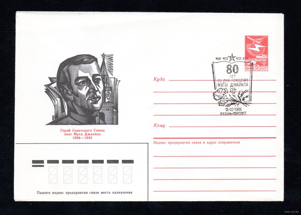 Художественный маркированный конверт СССР со спецгашением N 85-637 (27.12.1985) Герой Советского Союза поэт Муса Джалиль 1906-1944