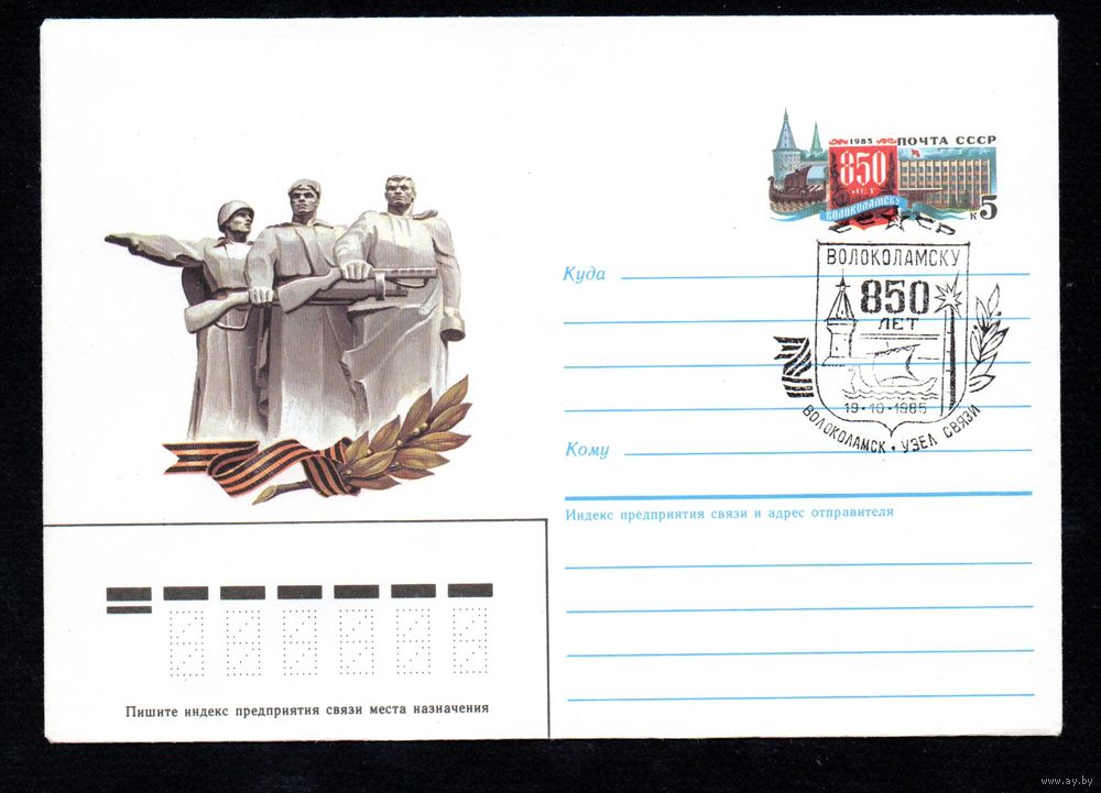 Художественный маркированный конверт СССР со спецгашением N 85-68 (08.02.1985) 850 лет Волоколамску