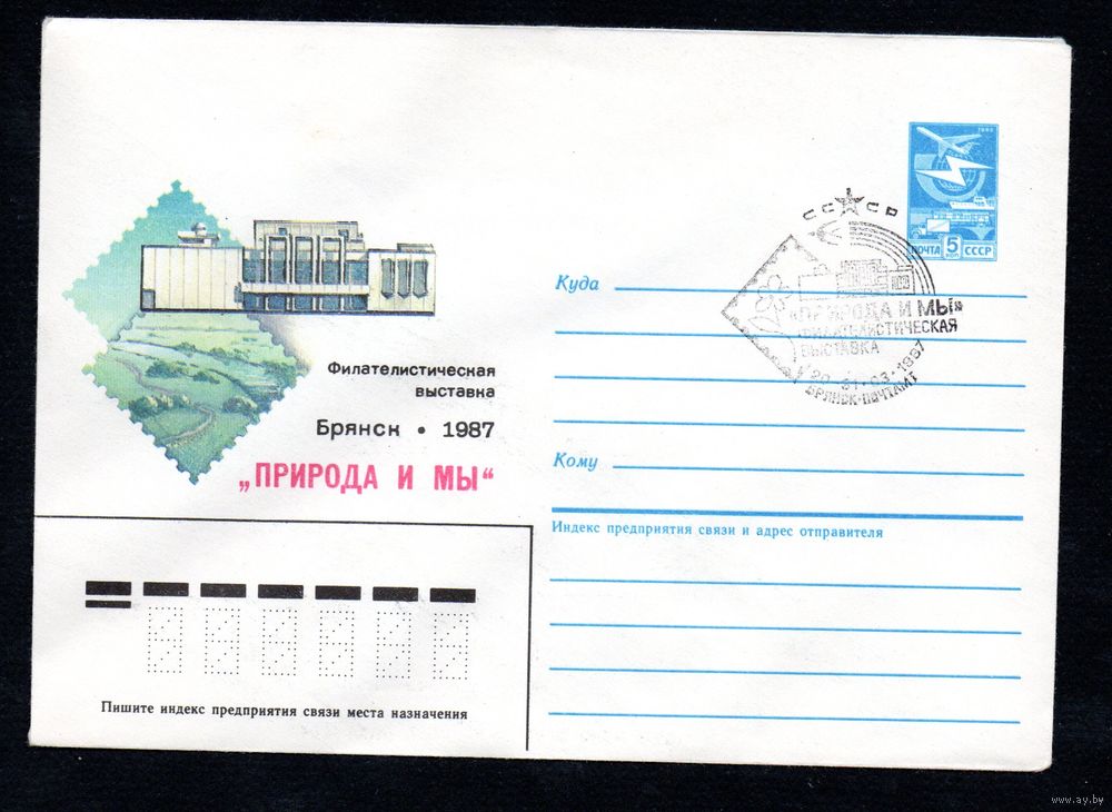 Художественный маркированный конверт СССР со спецгашением N 86-475 (20.10.1986) Филателистическая выставка "Природа и мы" Брянск 1987