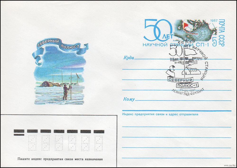 Художественный маркированный конверт СССР со спецгашением N 86-600 (19.12.1986) Северный полюс - 1