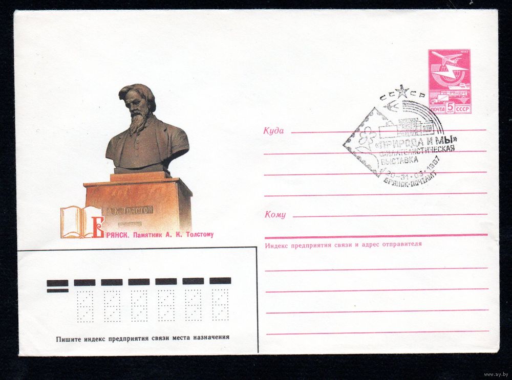Художественный маркированный конверт СССР со спецгашением N 86-83 (21.02.1986) Брянск. К. Памятник А. К. Толстому