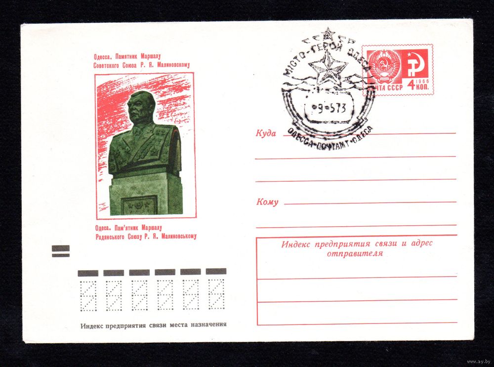 Художественный маркированный конверт СССР со спецгашением N 8913 (08.05.1973) Одесса. Памятник Маршалу Советского Союза Р.Я.Малиновскому