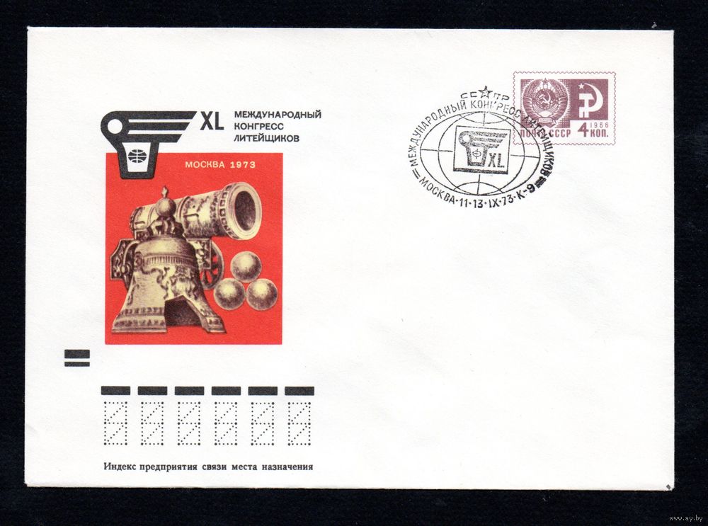 Художественный маркированный конверт СССР со спецгашением N 8989а (25.06.1973) XL Международный конгресс литейщиков Москва 1973