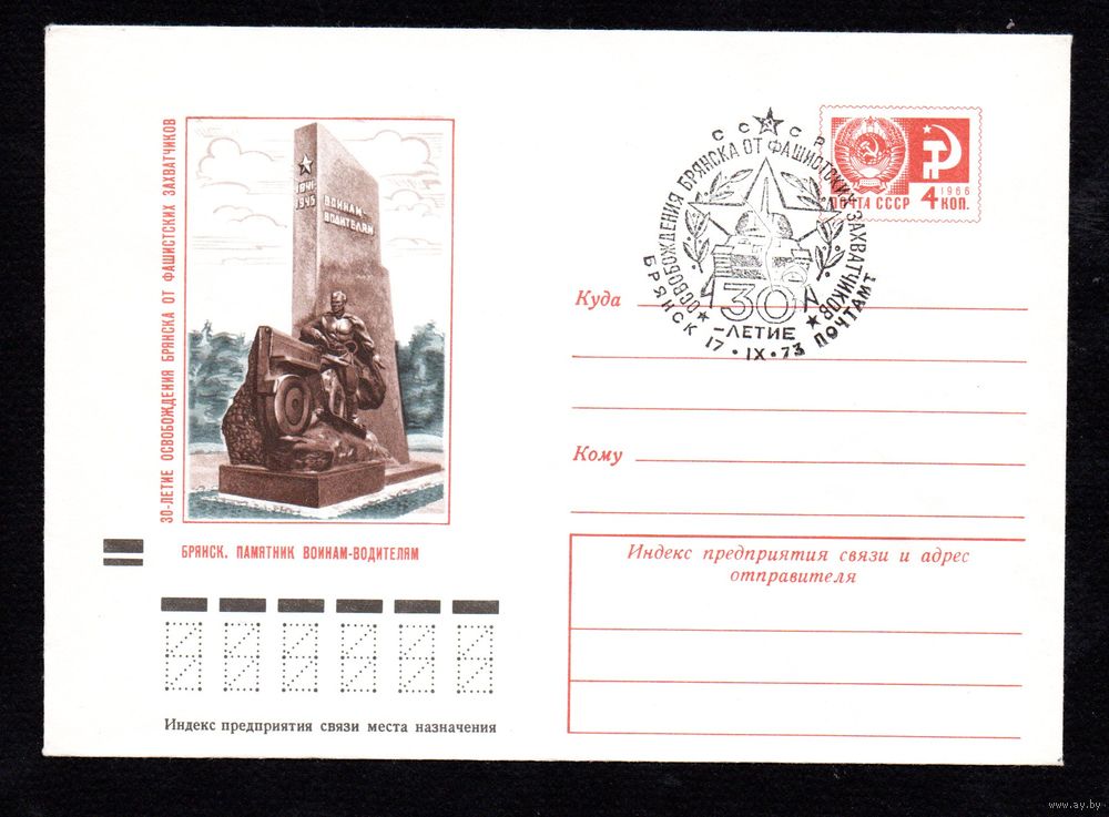 Художественный маркированный конверт СССР со спецгашением N 9138 (21.08.1973) '30-летие освобождения Брянска от фашистских захватчиков Брянск. Памятник воинам-водителям