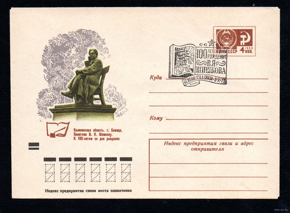Художественный маркированный конверт СССР со спецгашением N 9139 (21.08.1973) Калининская область. Г. Бежецк. Памятник В.Я. Шишкову К 100-летию со дня рождения