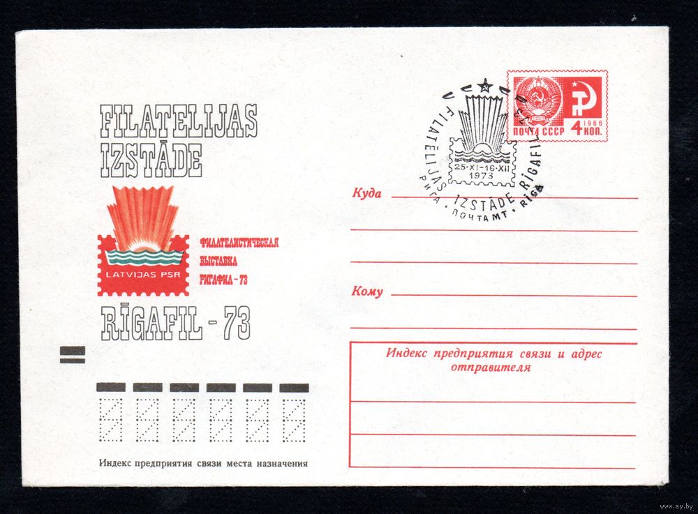 Художественный маркированный конверт СССР со спецгашением N 9143 (28.08.1973) Филателистическая выставка Ригафил-73