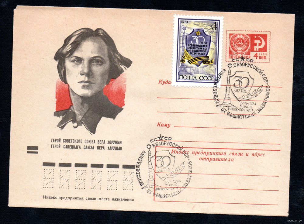 Художественный маркированный конверт СССР со спецгашением N 9148 (28.08.1973) Герой Советского Союза Вера Хоружая
