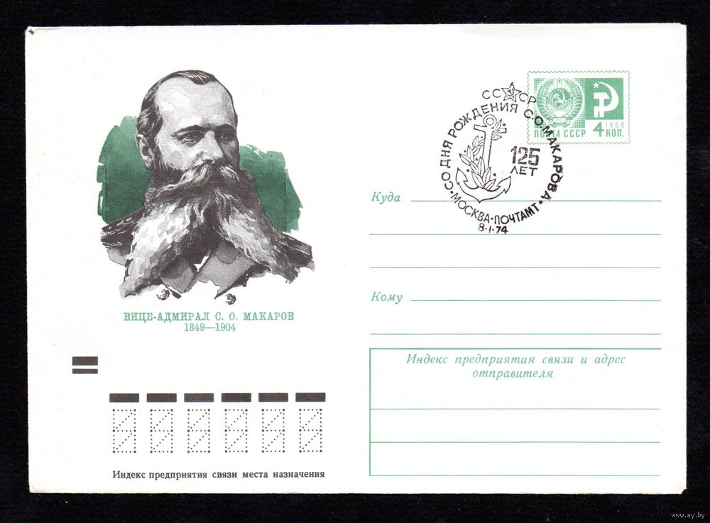 Художественный маркированный конверт СССР со спецгашением N 9312 (27.11.1973) Вице-адмирал С.О. Макаров 1849-1904
