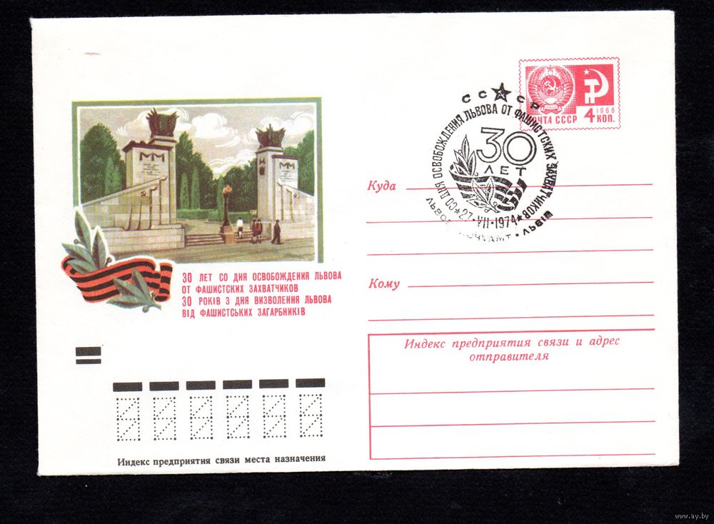 Художественный маркированный конверт СССР со спецгашением N 9538 (06.03.1974) 30 лет со дня освобождения Львова от фашистских захватчиков