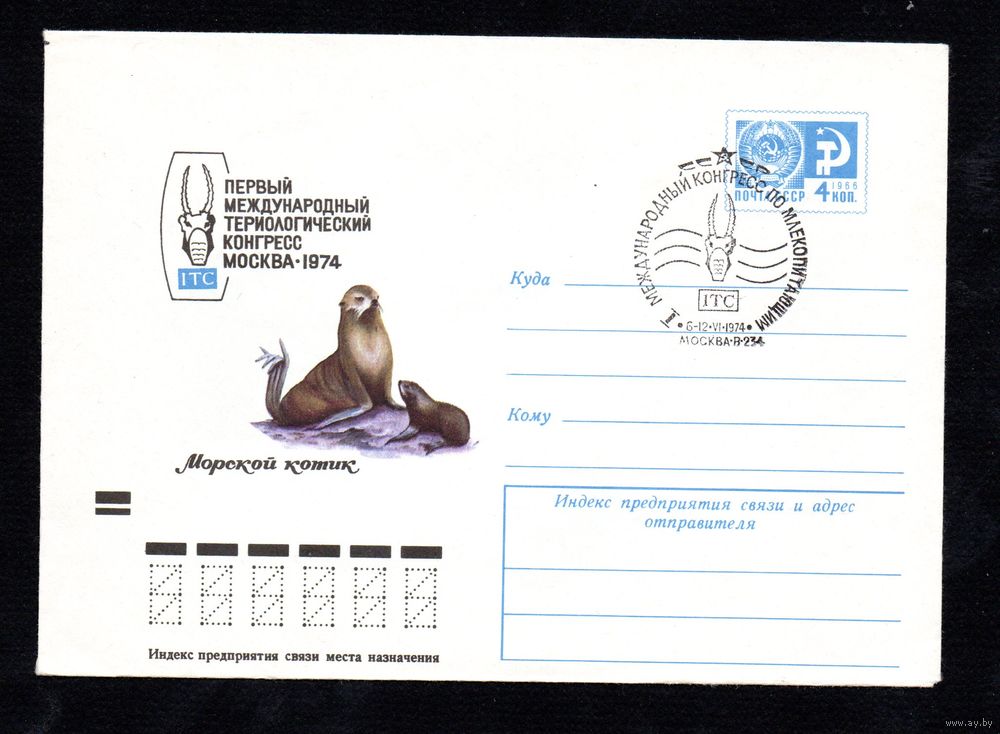 Художественный маркированный конверт СССР со спецгашением N 9583 (20.03.1974) Первый Международный териологический конгресс Москва 1974 Морской котик