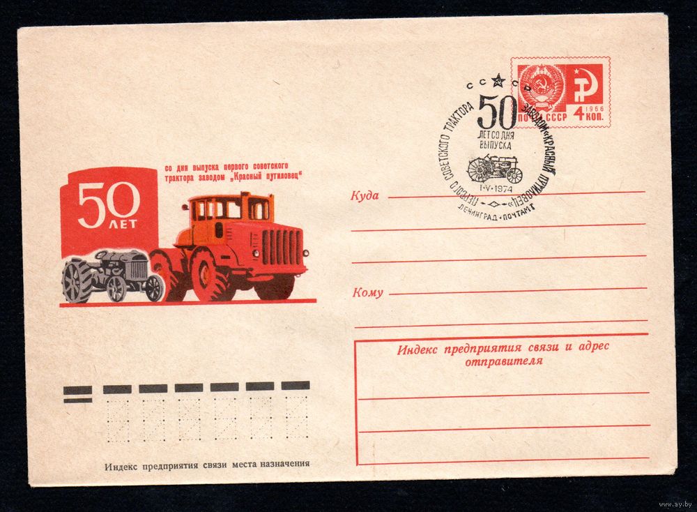 Художественный маркированный конверт СССР со спецгашением N 9633 (11.04.1974) 50 лет со дня выпуска первого советского трактора заводом " Красный путиловец"