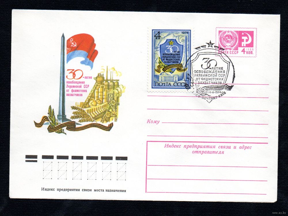 Художественный маркированный конверт СССР со спецгашением N 9780 (11.06.1974) 30-летие освобождения Украинской ССР от фашистских захватчиков