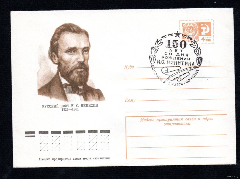 Художественный маркированный конверт СССР со спецгашением N 9809 (25.06.1974) Русский поэт И.С. Никитин 1824-1861