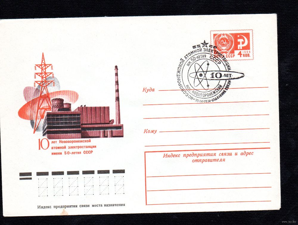Художественный маркированный конверт СССР со спецгашением N 9911 (12.08.1974) 10 лет Нововоронежской атомной электростанции имени 50-летия СССР