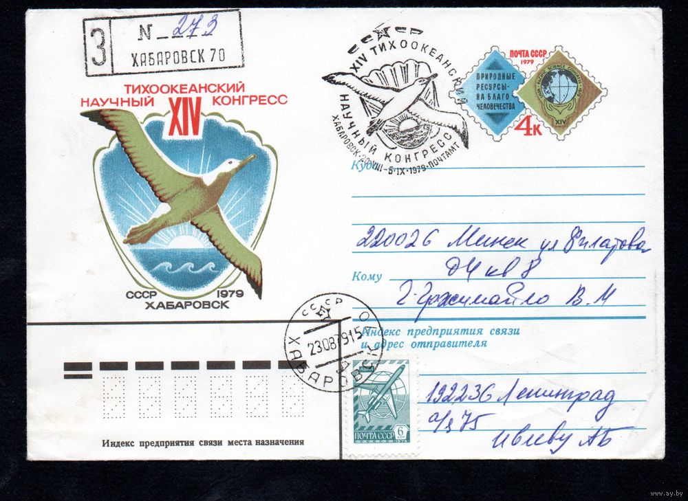 Художественный маркированный конверт СССР со спецгашением прошедший почту N 13382 (12.03.1979) XIV Тихоокеанский научный конгресс СССР 1979 Хабаровск