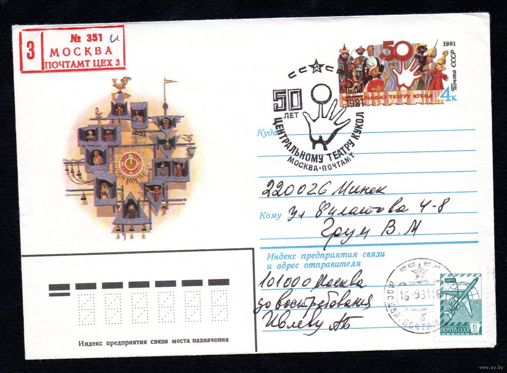Художественный маркированный конверт СССР со спецгашением прошедший почту N 14950 (29.04.1981) 50 лет Центральному театру кукол