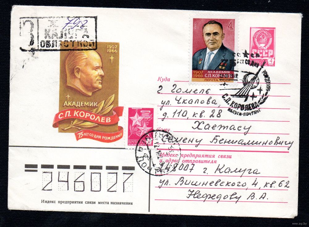 Художественный маркированный конверт СССР со спецгашением прошедший почту N 15289 (12.01.1982) Академик С.П. Королев 75 лет со дня рождения