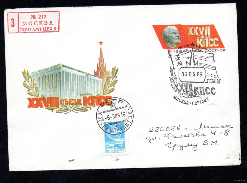 Художественный маркированный конверт СССР со спецгашением прошедший почту N 85-552 (22.11.1985) XXVII Съезд КПСС