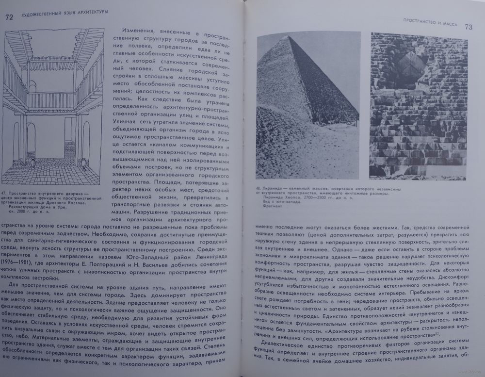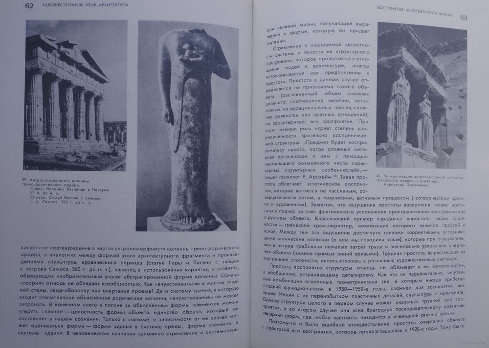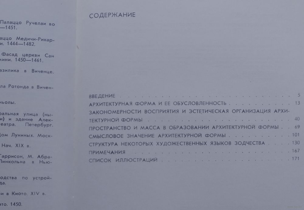 Большой формат. Мелованный альбом. Ляссе. Тираж 30000 экз. 178 стр. Монография посвящена проблемам выразительности и художественной образности в архитектуре. На материале памятников архитектуры разных стран и эпох, начиная от древности и кончая ХХ веком, раскрывается сложная зависимость архитектурной формы от общественного назначения произведений зодчества. Прослеживается развитие различных систем художественного языка, созданных зодчеством.