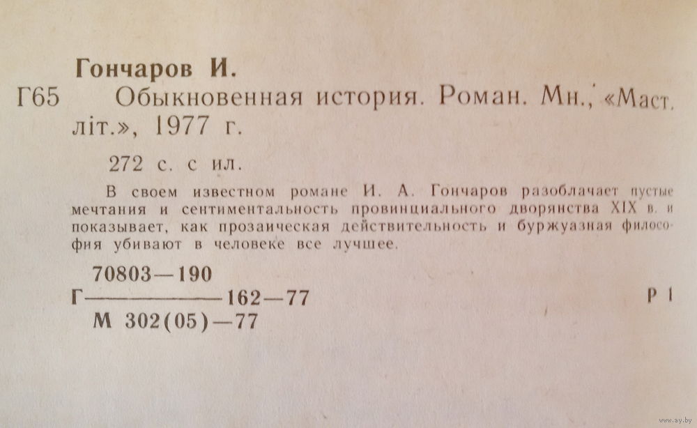 И.А.Гончаров-Обыкновенная история, роман, Минск, Мастацкая литература, 1977г, с.269, тираж 400.000экз, твердый переплет.