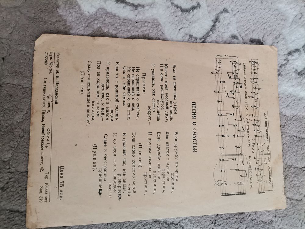 И. Конверт Песня о счастье для голоса и хора 1946