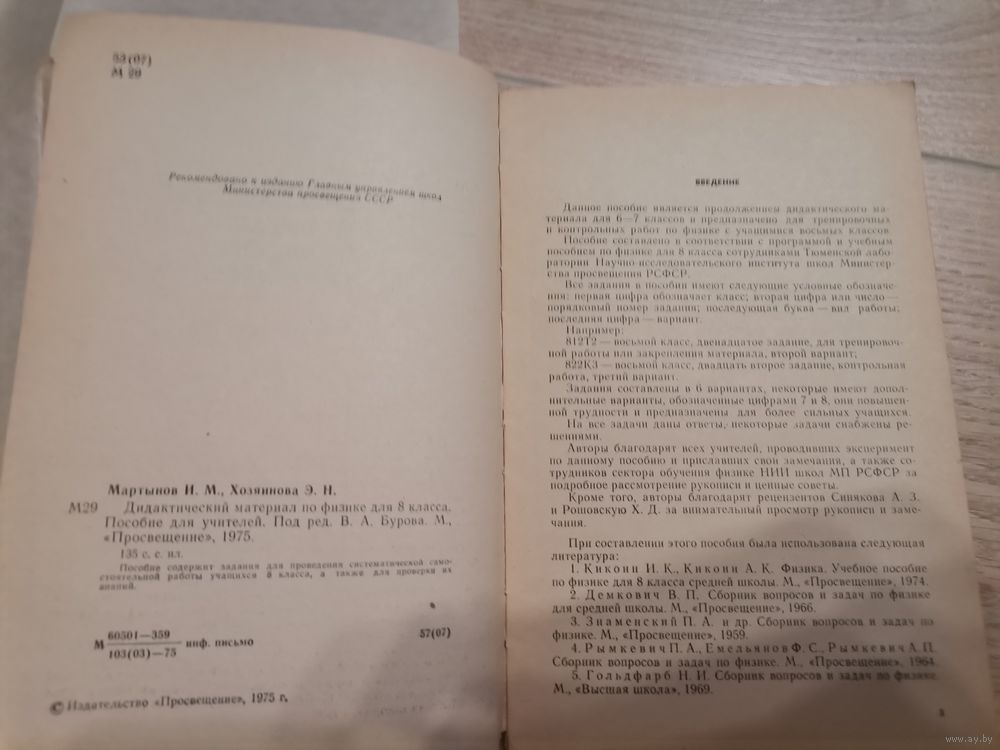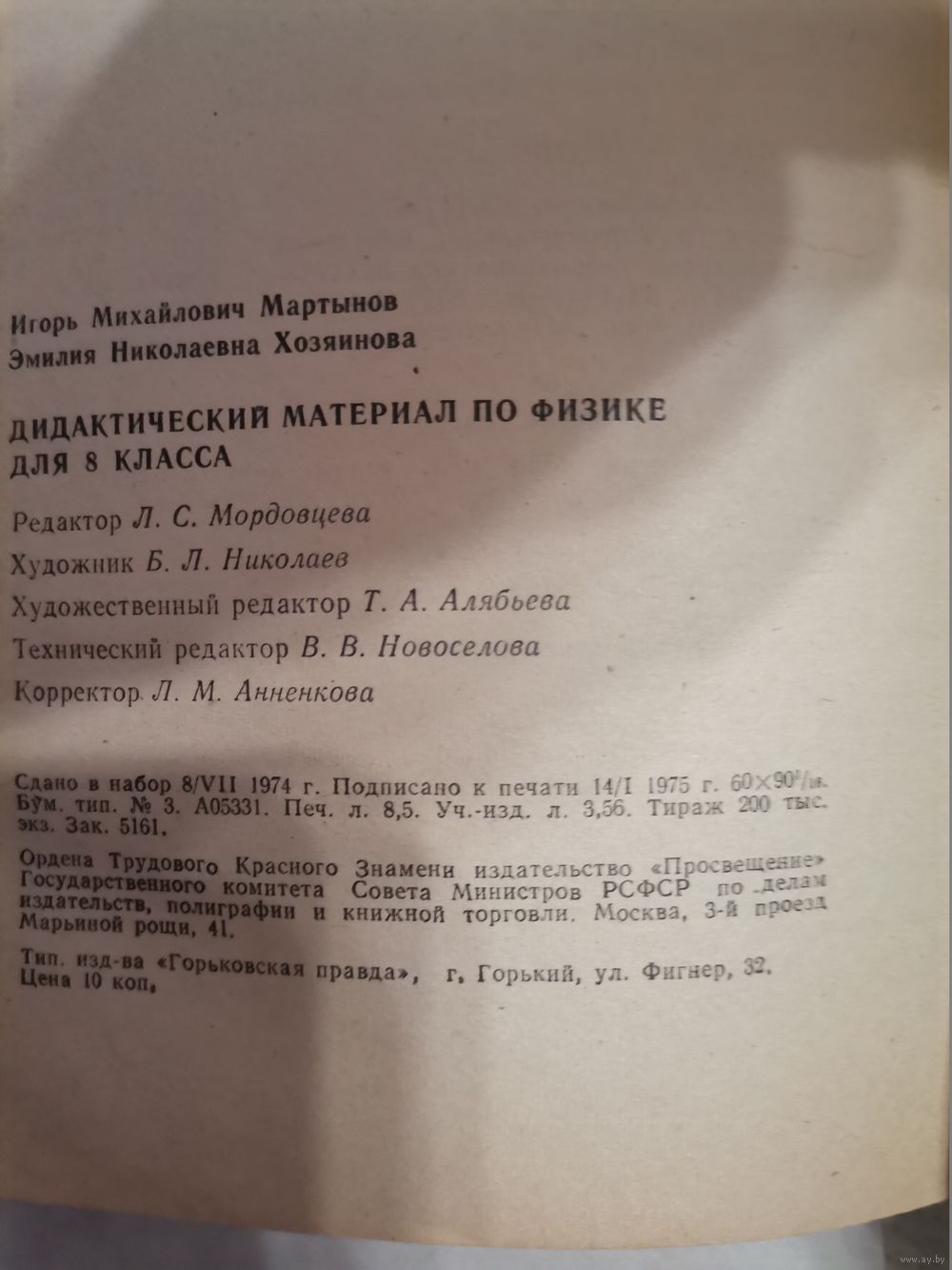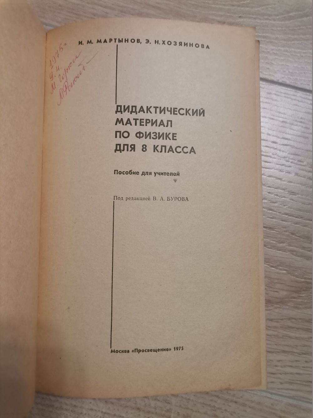 И.М.Мартынов Э.Н.Хозяйнова Дидактический материал по физике 8 класс 1975