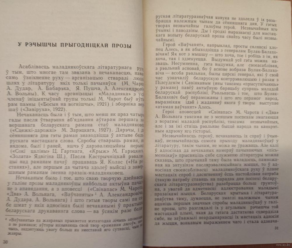Даследуецца праблема развіцця беларускай прозы першых гадоў Савецкай улады на прыкладзе творчай спадчыны членаў арганізацыі "Маладняк". Разглядаюцца пытанні пашырэння тэматычных абсягаў, сцвярджэнне прыгодніцкага і рамантычнага напрамкаў.