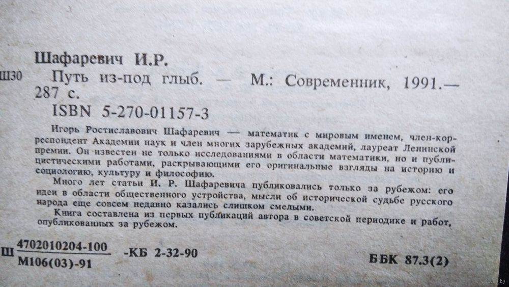 И.Р.Шафаревич известен своей активной общественной и публицистической деятельностью. Участник правозащитного движения в СССР, выступал с критикой тоталитарной системы. Много лет статьи И.Р.Шафаревича публиковались только за рубежом: его идеи в области общественного устройства, мысли об исторической судьбе русского народа еще совсем недавно казались слишком смелыми. Книга составлена из первых публикаций автора в советский период и работ, опубликованных за рубежом.