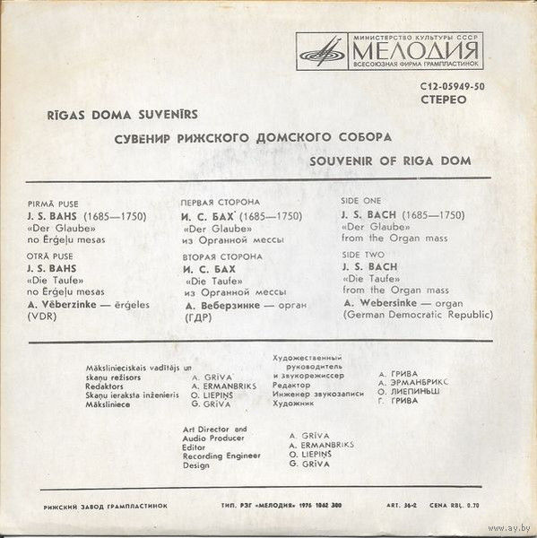 И.С. Бах - А. Веберзинке – Rīgas Doma Suvenīrs