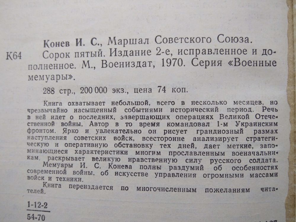 И.С. Конев Сорок пятый // Серия: Военные мемуары. 1970 год