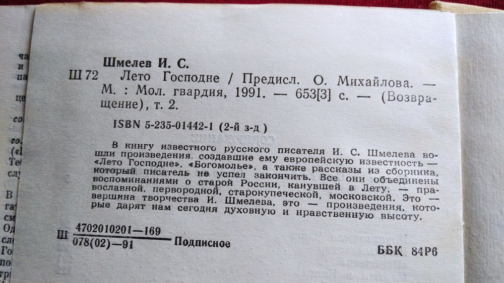 В книгу известного русского писателя И. С. Шмелева вошли произведения, создавшие ему европейскую известность - ``Лето Господне``, `` Богомолье``, а также рассказы из сборника, который писатель не успел закончить. Все они объединены воспоминаниями о старой России, канувшей в Лету, — православной, первородной, старокупеческой, московской. Это — вершина творчества И. Шмелева, это — произведения, которые дарят нам сегодня духовную и нравственную чистоту.