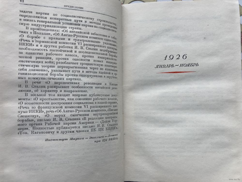 И.СТАЛИН Сочинения Том 8. 1926 январь -ноябрь ОГИЗ Москва 1948г