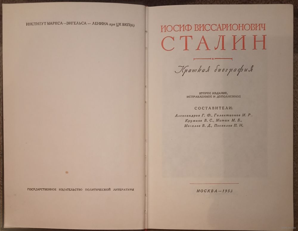 И. В. Сталин, Краткая биография. Второе издание, исправленное и дополненное. ГИПЛ, Москва 1953 год