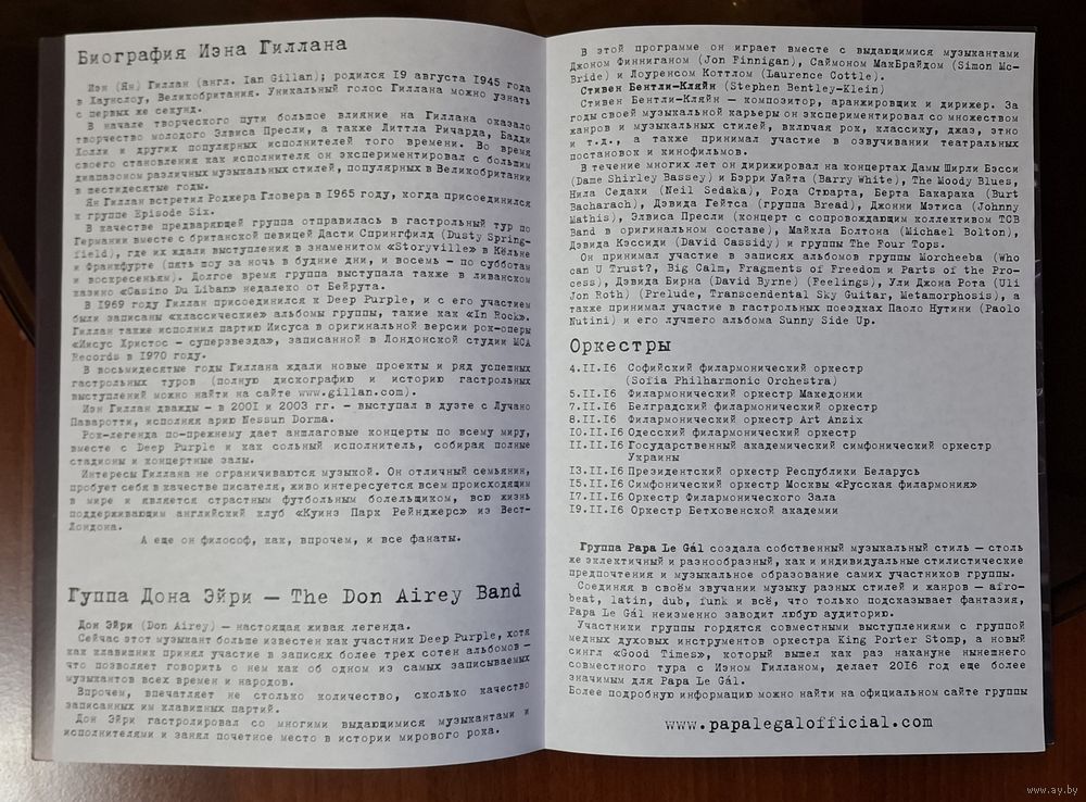 Тур бук с концертного тура 2016г. Ian Gillan с программой Ian Gillan Sings Deep Purple with Don Airey Band and Philarmonic Orchestra (София, Киев, Минск, Москва и тд.)