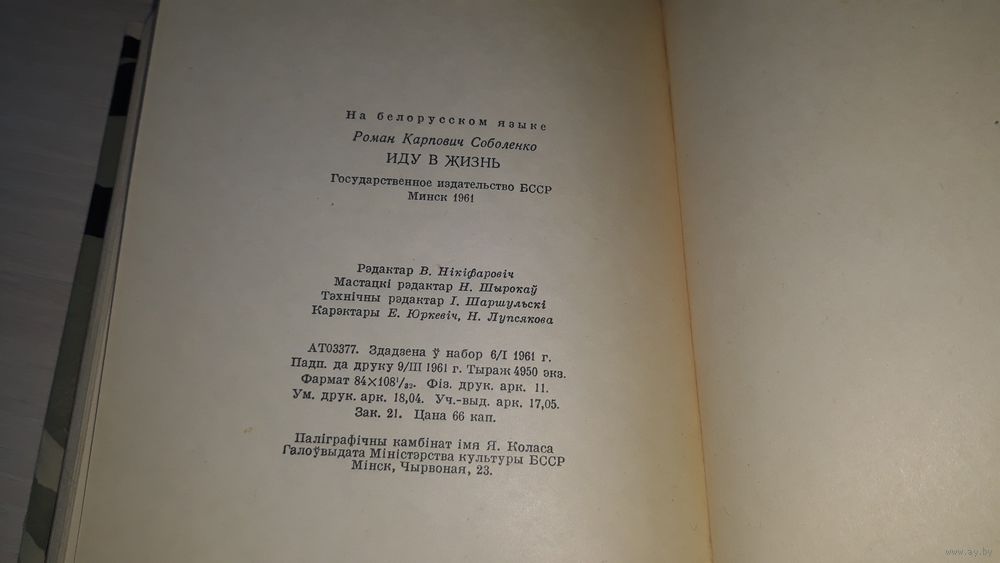 Іду ў жыццё - Раман Сабаленка - 1961 з аўтографам - на беларускай мове - Иду в жизнь на белорусском языке с автографом автора - Юнацтва ў дарозе, Выпрабаванне сталасці