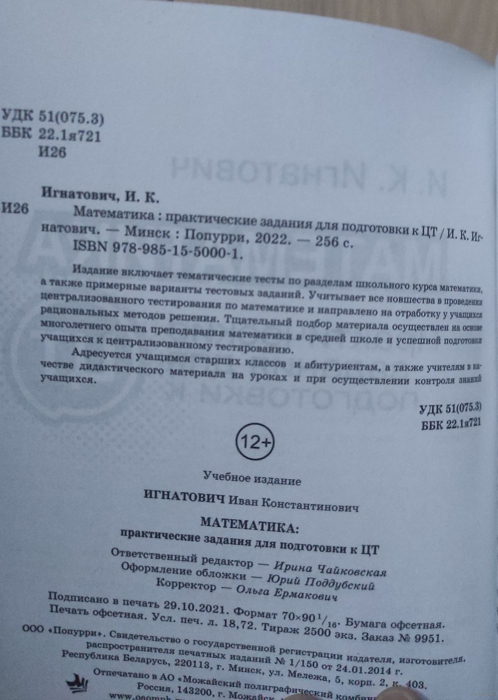 Игнатович И.К. "Математика. Практические задания для подготовки к ЦТ"