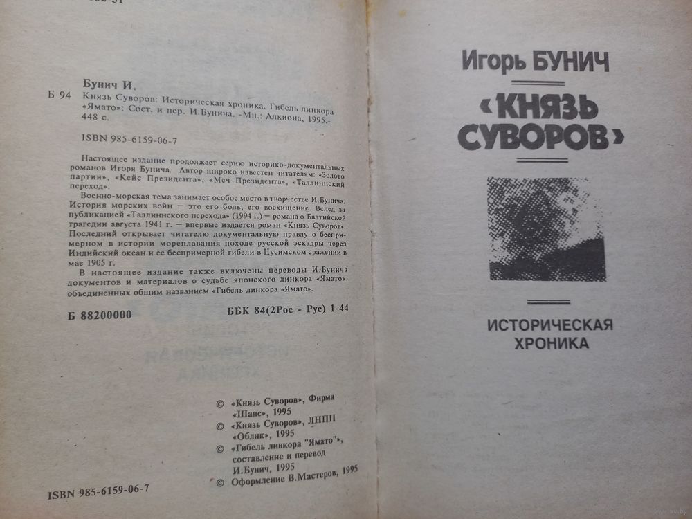 Игорь Бунич. Князь Суворов. Гибель линкора Ямато. 1995 г.