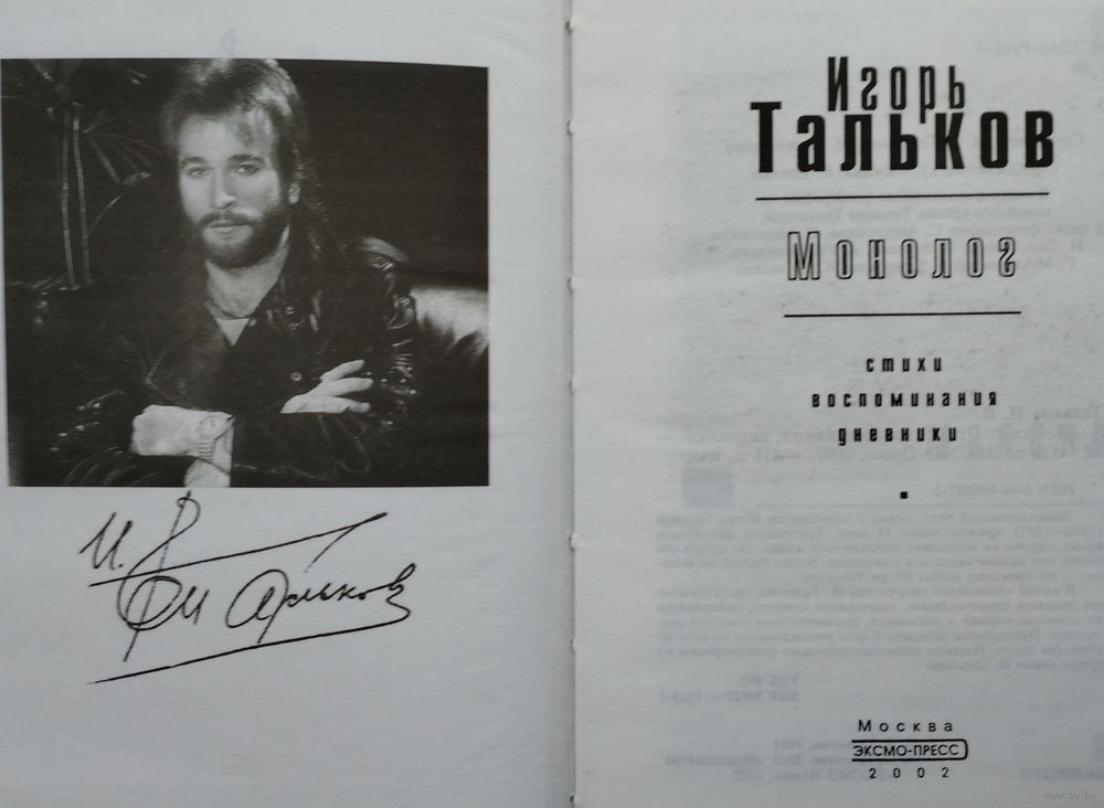 Тираж 7100 экз. 418 стр. Замечательный поэт, певец и композитор Игорь Тальков прожил всего 34 года. Трагически оборвалась яркая, творчески и духовно наполненная жизнь. Но судьба его песен, его поэзии оказалась счастливее. Народ России не забывает и по-прежнему любит Игоря Талькова. В книге "МОНОЛОГ" творчество И. Талькова представлено его песнями-пророчествами, задушевной лирикой, выдержками из записных книжек и дневников, прозаическими текстами разных лет. Публикуется материал о ходе расследования по делу об убийстве поэта. Издание проиллюстрировано фотографиями из архива семьи И. Талькова.