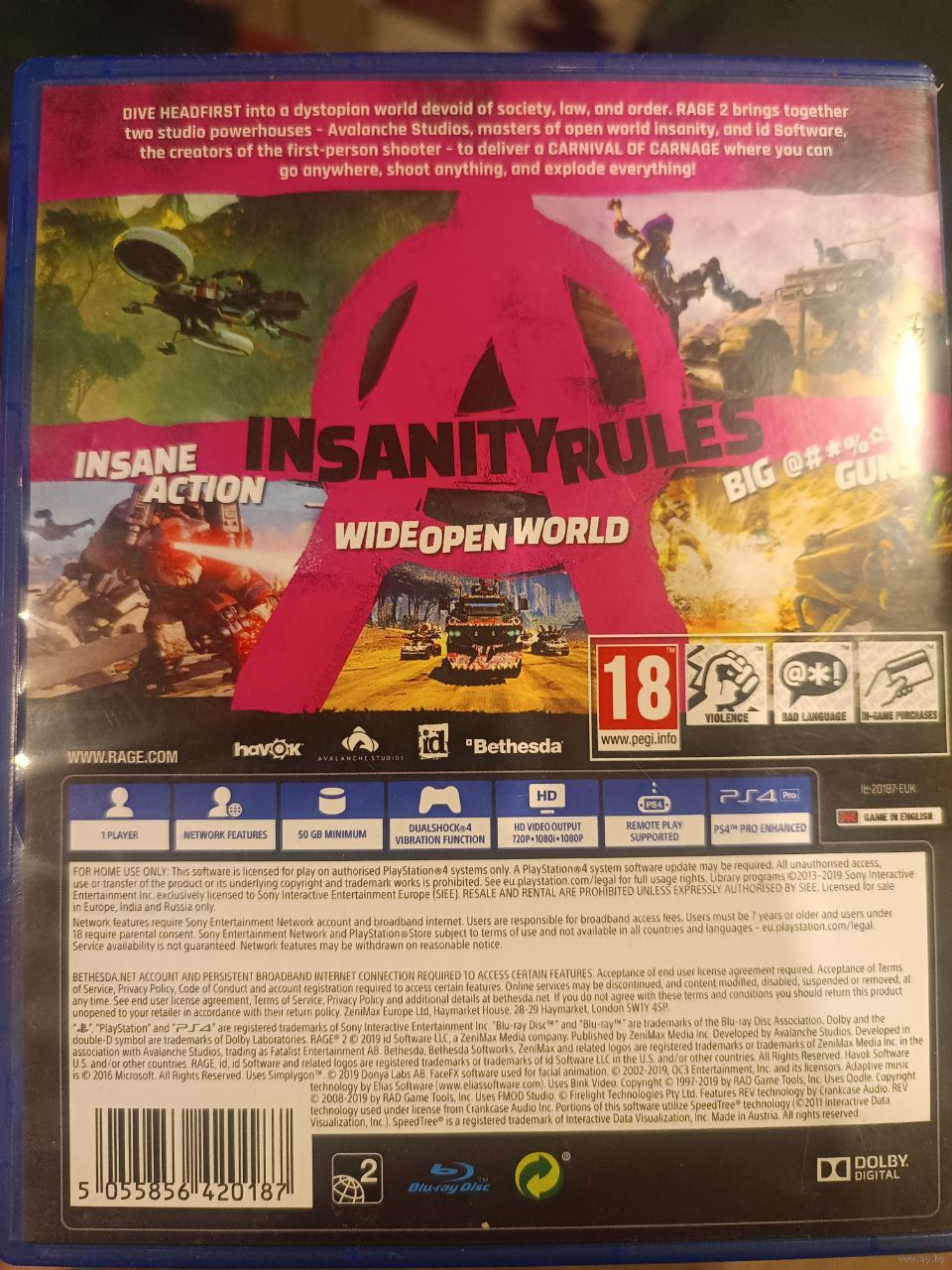 Rage 2 для Playstation 4. Состояние Отличное. Полностью на русском языке.
