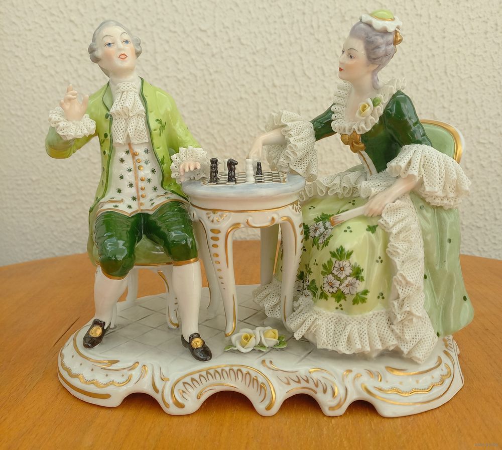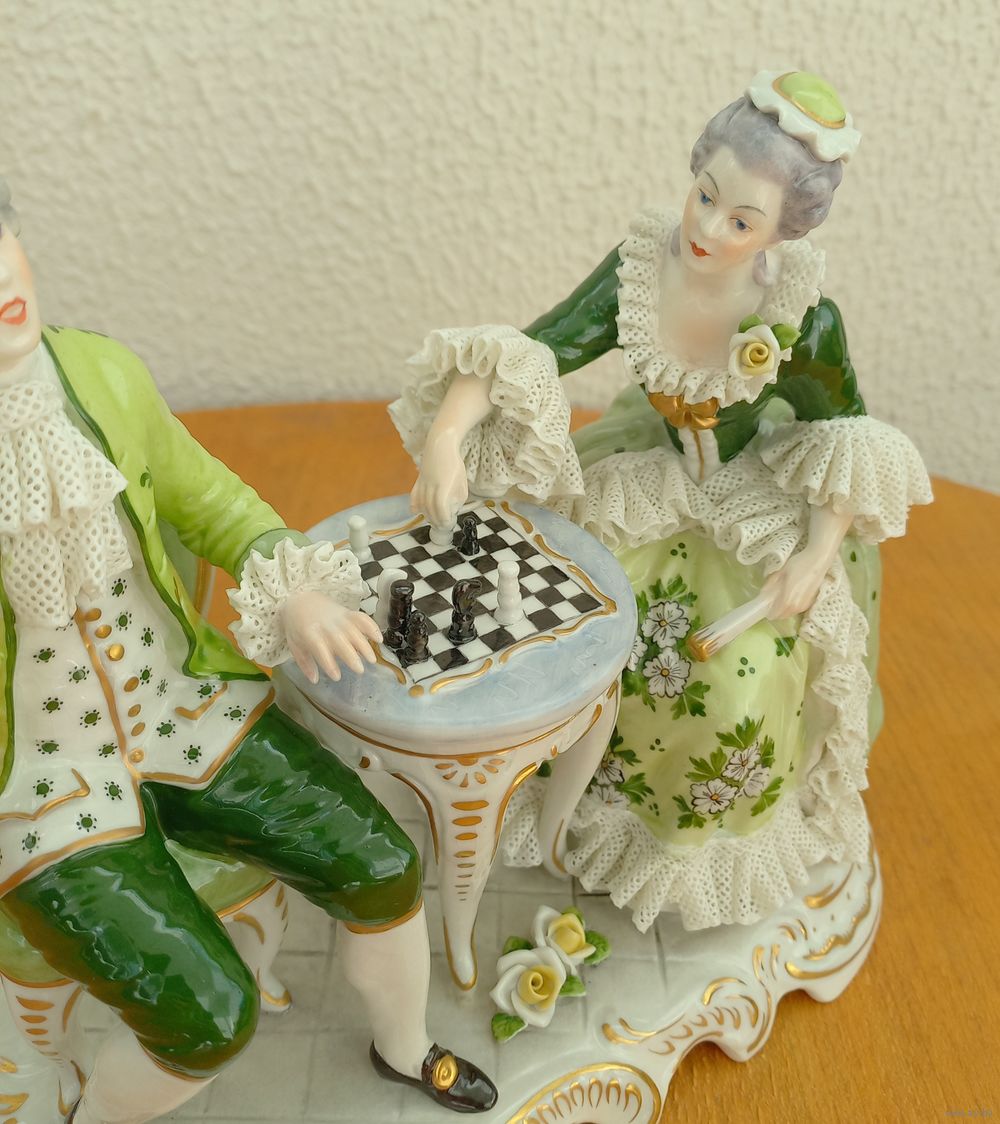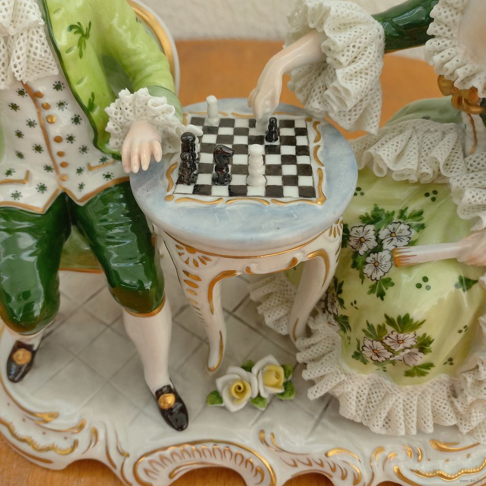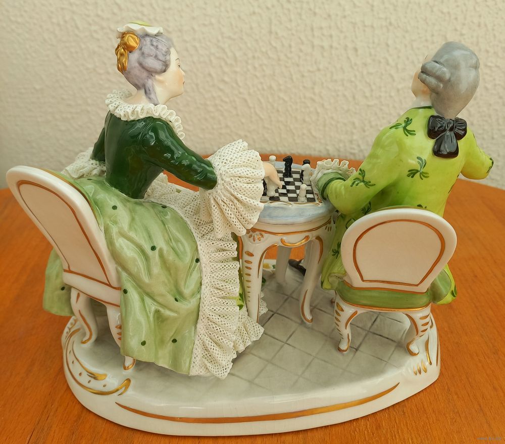 Очень редкая статуэтка,фарфор,"Игра в шахматы". Редкий окрас.