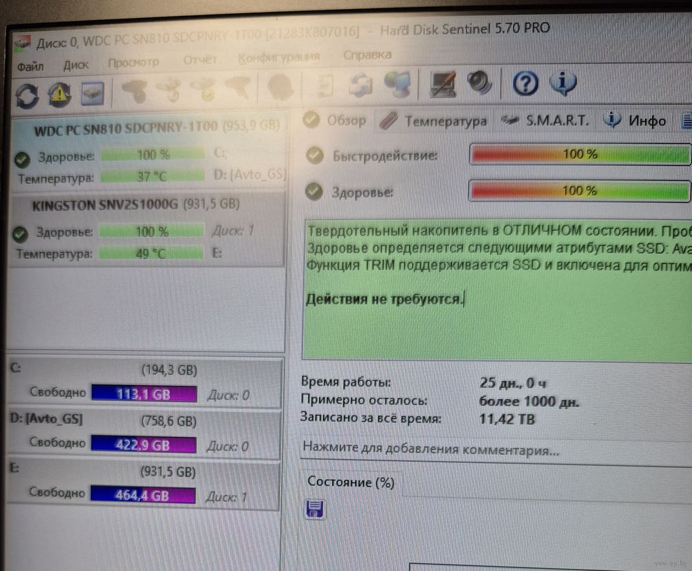 | Видеокарта | 7 Гб 832 Мб |